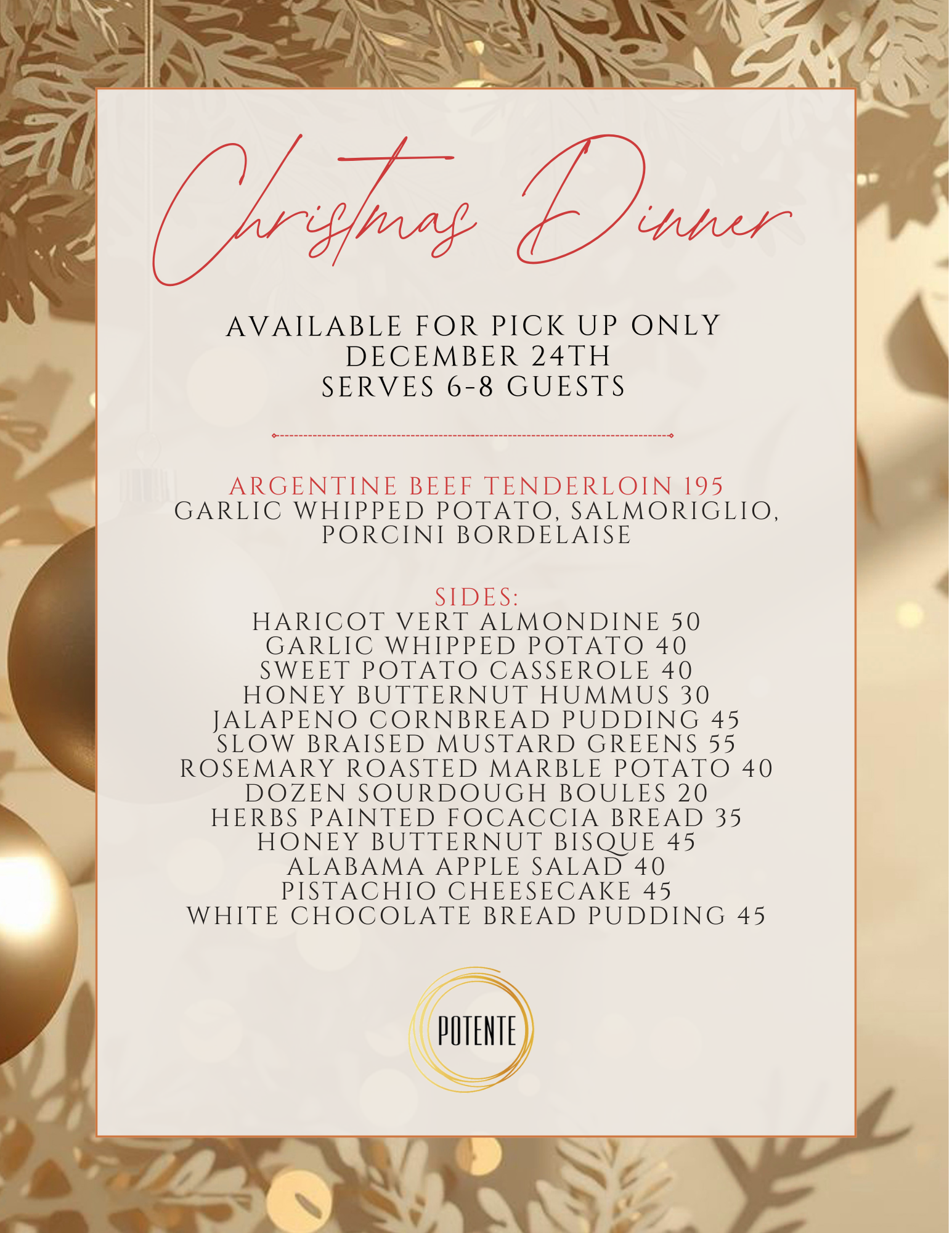Make Christmas Delicious—Potente Has Dinner CoveredSpend more time celebrating and less time cooking. Our Christmas Dinner To-Go offers a beautifully prepared holiday meal created by our culinary team, ready to […]